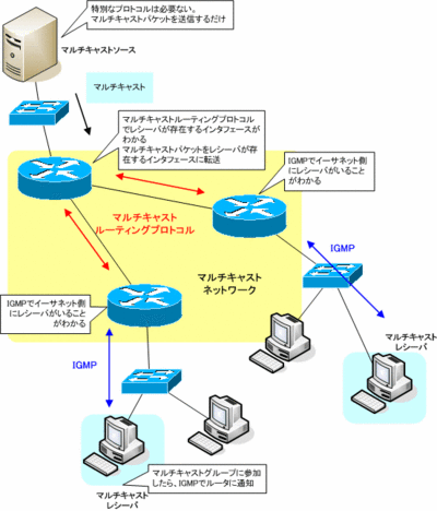 ースにルーティングを行い、レシーバまでマルチキャストパケットが届きます。