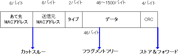 転送のタイミングをまとめると次の図のようになります。 ![]() どの転送方式を使っているかはスイッチの機種によって変わってき ます。最初はカットスルーにして、エラーが増えてきたら自動的に ストア&フォワードにするような機種もあったりします。 |