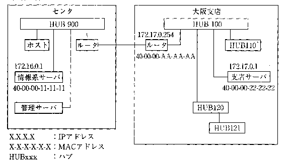 | 直接、間接ルーティング 次は午後の問題なので、ちょっと長いけどがんばってください。直接ルーティング(ルータを介さない)ときと、間接ルーティング(ルータを介す)ときの違いについてです。 平成11年ネットワークスペシャリスト午後1問4 ネットワークシステムの運用に関する次の記述を読んで、設問1〜3に答えよ。 R社では社内ネットワークを構築し、業務系と情報系の2システムで利用している。東京の本社ビルにコンピュータセンタ(以下、センタという)を置き、センタと全国に敷か所ある支店間を64kビット/秒の高速ディジタル回線でスター状に接続している。最近、その回線容量が不足気味になってきた。 このネットワークのプロトコルはTCP/IPで統一され、センタと支店間はルータ経由で接続されている。センタと各支店の接続構成はほぼ同じであり、例として大阪支店との接続構成を図1に示す。主な機器のIPアドレスとMACアドレスを併せて図1に示す。 図1 R社のネットワーク構成(センタと大阪支店間) ![]() センタには、業務系ホスト(ホスト)と情報系サーバ、ネットワーク管理システム用のサーバ(以下、管理サーバという)を設置している。情報系サーバは、イントラネットにおけるWWW及び電子メールのサーバである。 支店には支店サーバを設置し、社員は各員に割り当てられたクライアントで支店サーバ、センタにある情報系サーバとホストにアクセスする。省電力化のため、使用していないクライアントの電源は切っている。支店サーバとクライアント、ルータの接続には、10BASE-TのLANを利用し、16ポートのハブをカスケード接続している。大阪支店のクライアント数は、約50台である。 このネットワークの管理はシステム部が行っており、ネットワークの構成変更やクライアントの増設に伴う通信機器やケーブルの手配も行う。ただし、ネットワークの構成変更を伴わないクライアントの増設だけは、各部門で独自に行っても構わないことになっている。 管理サーバで稼働させているネットワーク管理システムでは、構成管理、障害管理のほか、性能管理を行う。構成管理機能は、ネットワークの論理的構成及び物理的構成を把握するために利用するものである。R社では、【 a 】機能を使用していないので、ネットワークに機器の追加や撤去、移設が生じる場合には、ネットワーク構成情報の変更を明示的に行っている。しかし、クライアントはこの対象外である。 障害管理機能は、ネットワークの機器障害の検知を行ったり、機器からの障害情報を受けたりすることで、障害切分けに利用するものである。機器又は経路の障害調査に用いるpingコマンドには【 b 】というプロトコルが使用される。 R社では、障害検知の対象機器については、SNMPに対応するものを導入している。さらに、遠隔地にある機器の稼働状況を把握するため、支店ごとに【 c 】エージェントを置くことによって、センタ側で支店LANのパケットを収集することが可能である。 性能管理機能は、ネットワークを良好な状態で利用するために、トラフイック量や応答時間などを把握し、評価・分析に利用するものである。性能管理の一つとして、利用率やトラフイック量などが【 d 】を超えると、【 c 】からマネージャにTrapメッセージを送るという方法がある。 ある日、大阪支店のS氏からシステム部に連絡が入った。クライアントを増設するため、LANにハブを追加したが、うまくいかないとのことだった。 本来、システム部に無断で行った構成変更には対応しないことにしている。しかし今回は、教育の一環として新人のT君に対応させることにした。次はT君とS氏のやり取りである。 T君: クライアントが使用できないということですが、どういった状況なのでしょうか。もう少し詳しく説明していただけますか。 S氏: 今回3台のクライアントを増設したかったのだが、ハブのポートがすべて使用されていたので、ハブを追加してクライアントに接続することにしたんだ。ところが、新しいハブに接続したクライアントからは、どのサーバも利用できない。 T君: クライアントの設定は正しいのでしょうか。 S氏: 今まで使っていたクライアントを新しいハブに接続しても同じ結果になる。だから、クライアントの設定の問題ではないと思うのだが。 T君: そうですね。その新しいハブはどうしたのですか。 S氏: 勝手に使って申し訳ないのだが、故障時の予備を使わせてもらったよ。 T君: 困りますね。でも、今は問題を先に解決しましょう。そのハブをどこに接続されたのでしょうか。それから、接続に使用したケーブルをどこから入手したか教えてください。 S氏: HUB110に接続していたクライアントを1台外して、そこに新しいハブを接続した。新しいハブの接続には、クライアント用に用意してあった1メートルのケーブルを使ったよ。何が悪かったのかな。 T君: そうですか。問題となる点が二つありますね。一つは、構成上の問題です。正しい接続構成図を