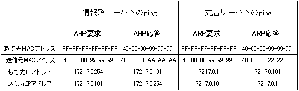 練習問題(データ送信時の動作、ARP)