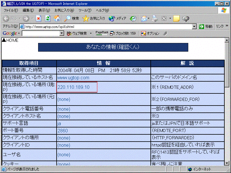 | 実験用匿名仮想HUBのネットワーク構成 匿名仮想HUBのネットワーク構成によると、このDHCPサーバはNATを行うサーバでもあるようです。 「匿名仮想HUBのネットワーク構成」 http://www.softether.com/images/fig_hub.jpg 匿名仮想HUBに接続したコンピュータからインターネットにアクセスしているときは、実際にはSoftEtherの仮想LANから10.10.0.1を経由して、NATによってアドレス変換が行われていることになります。匿名仮想HUBを経由したインターネットアクセスの様子は、次の図のようになるでしょう。 ![]() ※この図は、推測したもので実際の匿名仮想HUBのネットワーク構成とは異なっているかもしれません。この辺のネットワーク構成について詳しく知りたいですね。gatewayとnat、hubの物理的な接続がよくわかりません。gatewayは、WAN側のインタフェースをUnnumberedにしているのかなぁと思いますが・・・ nat.softether.comでNAT変換されて、インターネットにアクセスしていることは、送信元IPアドレスを確認すると分かります。下記のURLの「確認くん」というサイトで送信元IPアドレスを確認できます。 http://www.ugtop.com/spill.shtml ![]() 送信元IPアドレスが220.110.189.10であるように見えています。仮想LAN上の10.10.0.1のサーバがNATで220.110.189.10に変換しているわけですね。 ちなみに、SoftEtherの接続をきった状態で「確認くん」で送信元IPアドレスを見てみると、219.121.118.227でした。 ![]() 以上のように、匿名仮想HUBに接続すると、簡単にSoftEther-VPNを試して、匿名のインターネットアクセスを行うことができるようになります。ただし、絶対に悪用しないでください。 |